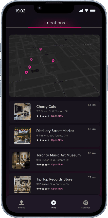 Design a gamified experience on the NXNE app that will engage festival attendees to visit partnered local vendors around the city of Toronto.